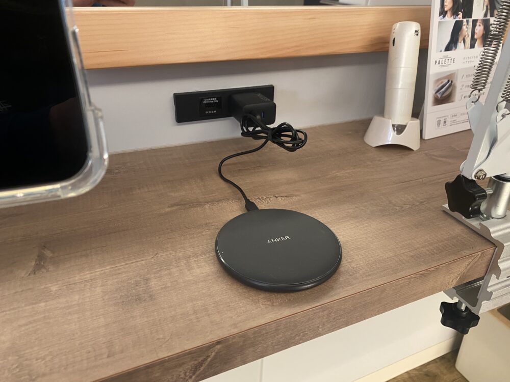 セット面に ワイヤレスの急速充電器 を設置しました。